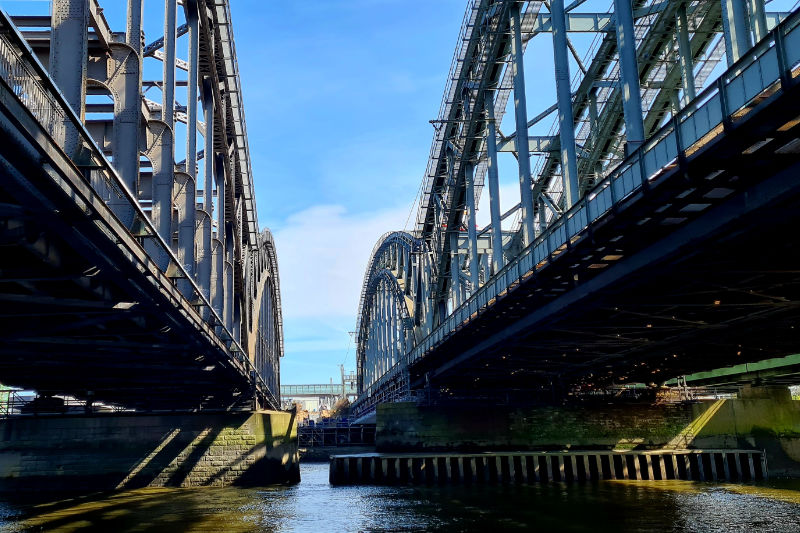 Nach einem Blick auf die Frucht- und RoRo-Terminals im Hansahafen geht es weiter auf der Norderelbe bis zu den Elbbrücken und nach einem Blick auf die Elbtower-Baustelle in den Baakenhafen. Hier wachsen in den kommenden Jahren noch 3 Hochhäuser aus dem Wasser. Bei passendem Wasserstand führt die Tour nach Möglichkeit am Baakenpark und Himmelsberg vorbei bis zum Amerigo-Vespucci-Platz.